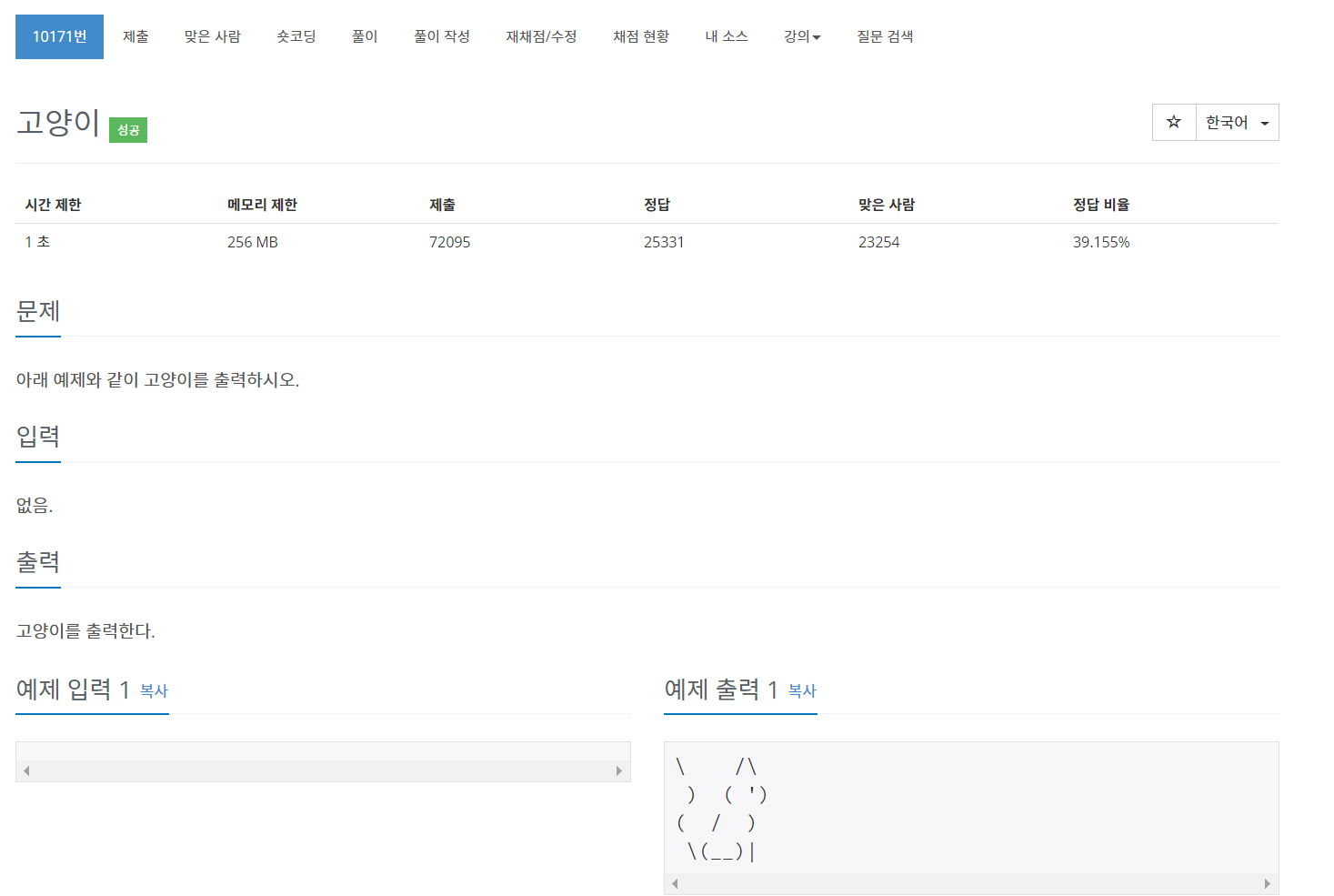 [JAVA] 백준 알고리즘 1단계 10171번 : 고양이