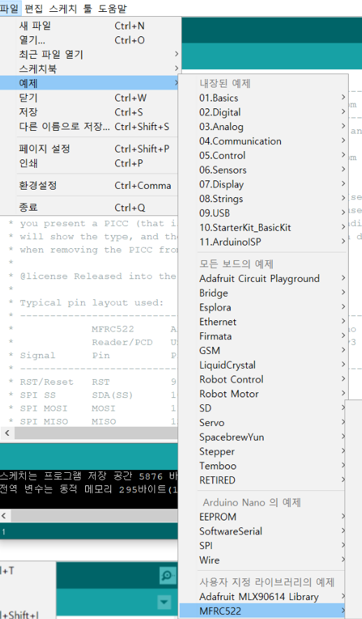 4-4. [파일] - [예제] - [MFRC522] -[Read nuid]