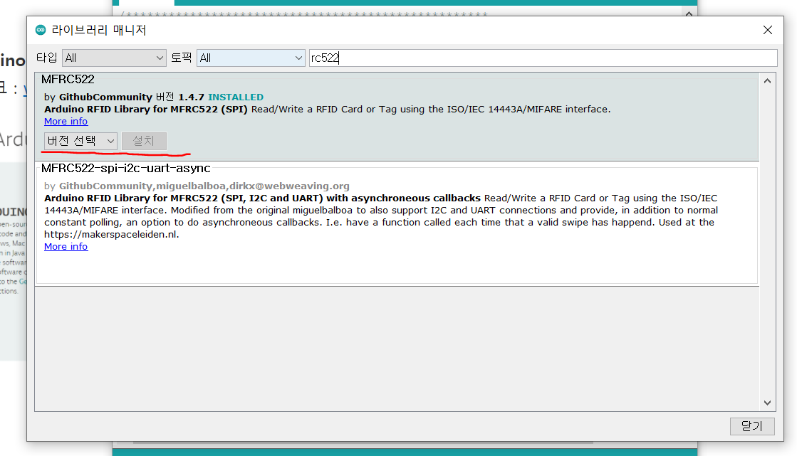 4-2. rc522 검색하여 MFRC522 설치. [최신버전 설치함]