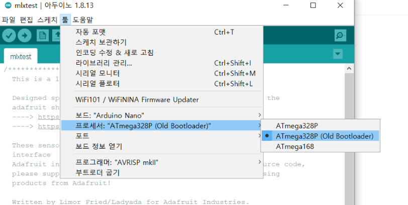 4-3. [툴] - [프로세서] - [ATmega328p (Old Bootloader)]